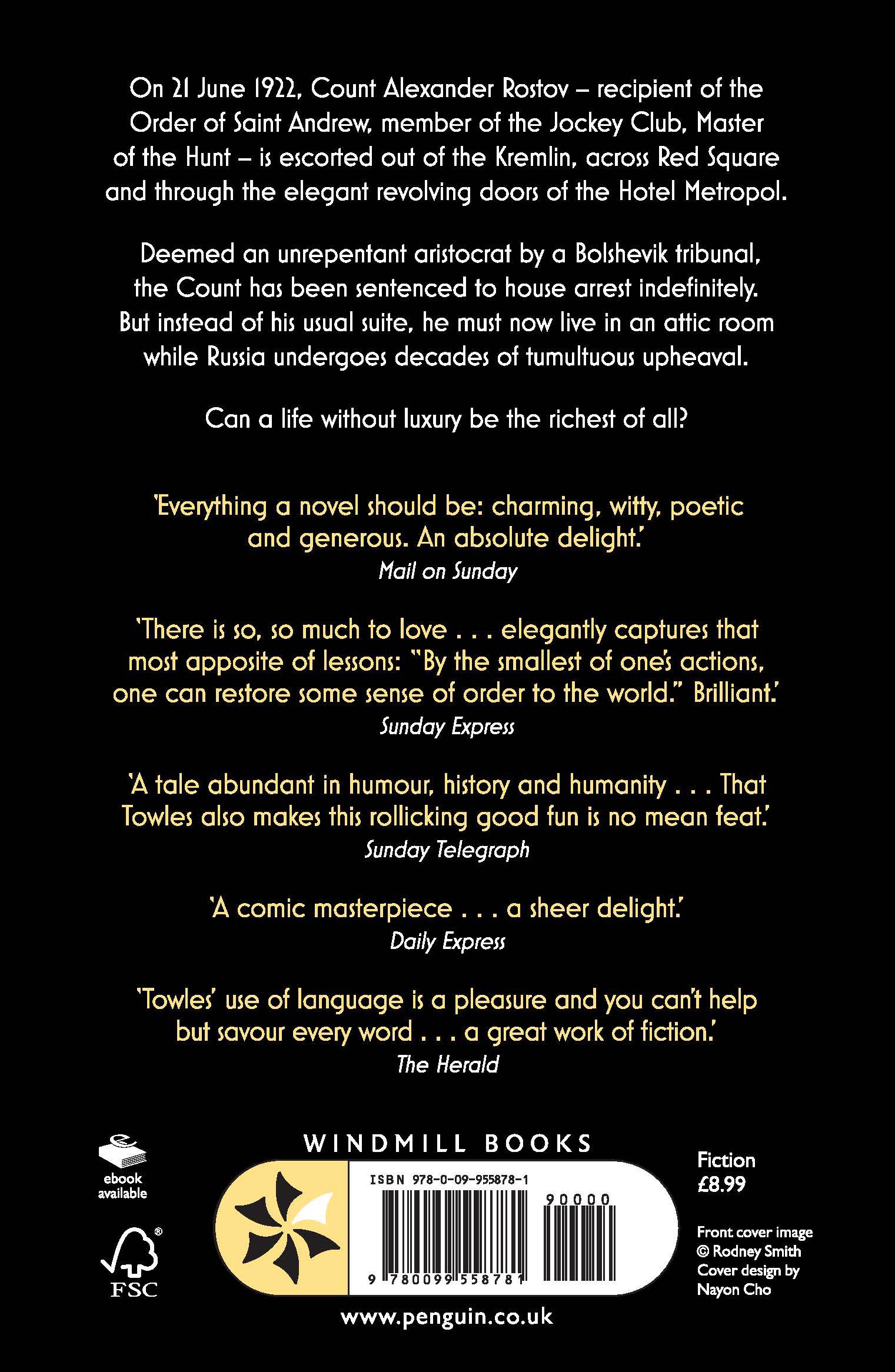 On 21 June 1922, Count Alexander Rostov – recipient of the Order of Saint Andrew, member of the Jockey Club, Master of the Hunt – is escorted out of the Kremlin, across Red Square and through the elegant revolving doors of the Hotel Metropol.