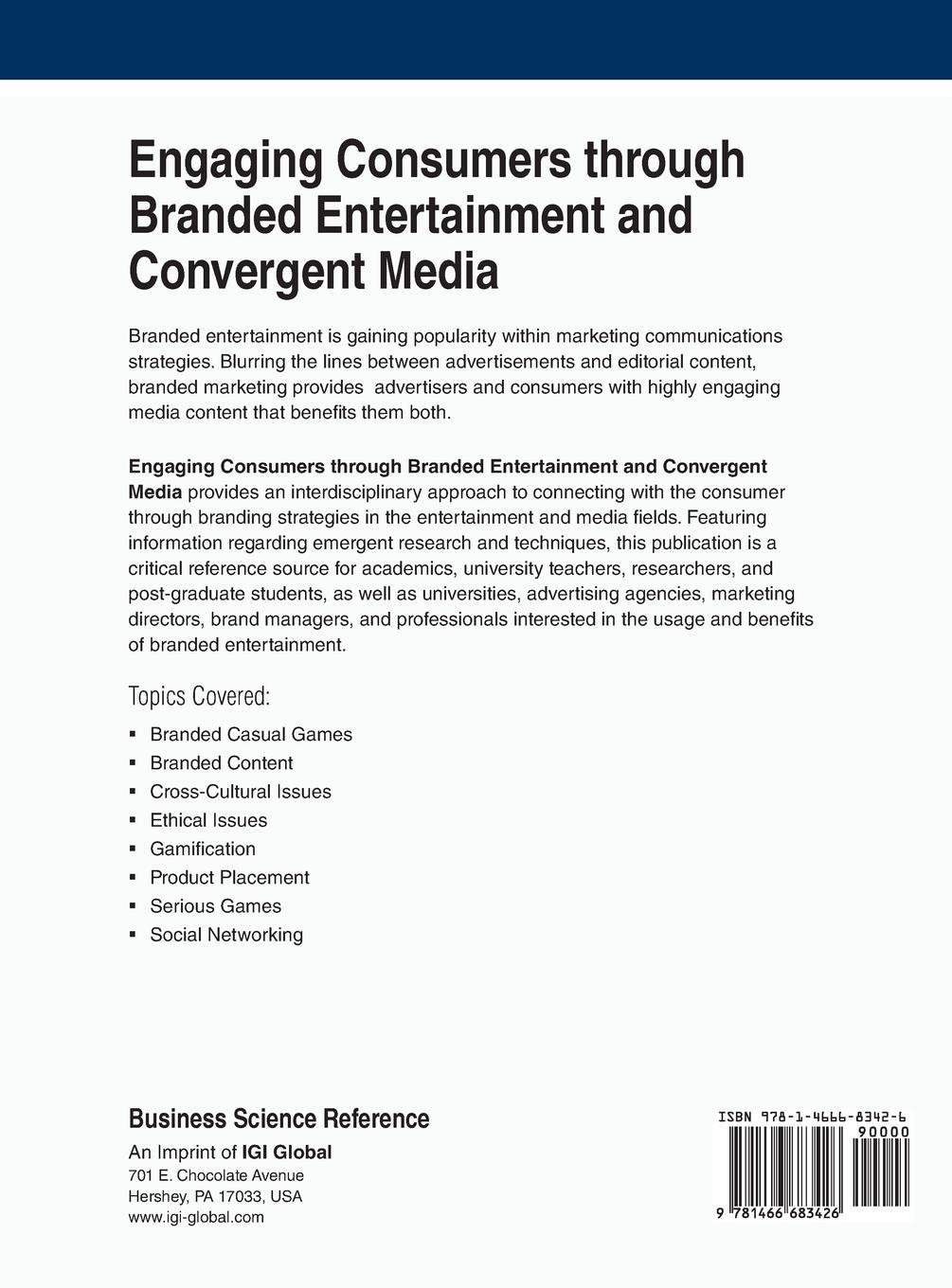 Engaging Consumers through Branded Entertainment and Convergent Media provides an interdisciplinary approach to connecting with the consumer through branding strategies in the entertainment and media fields. Featuring information regarding emergent research and techniques, this publication is a critical reference source for academics, university teachers, researchers and post-graduate students, as well as universities, advertising agencies, marketing directors, brand managers, and professionals interested in the usage and benefits of branded entertainment.