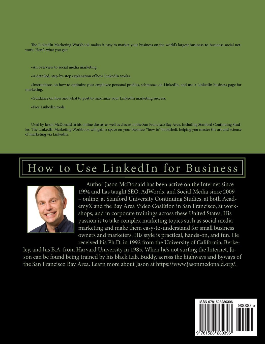 Author Jason McDonald has been active on the Internet since 1994 and has taught SEO, AdWords, and Social Media since 2009 – online, at Stanford University Continuing Studies, at both AcademyX and the Bay Area Video Coalition in San Francisco, at workshops, and in corporate trainings across these United States. His passion is to take complex marketing topics such as social media marketing and make them easy-to-understand for small business owners and marketers. His style is practical, hands-on, and fun. He received his Ph.D. in 1992 from the University of California, Berkeley, and his B.A. from Harvard University in 1985. When he’s not surfing the Internet, Jason can be found being trained by his black Lab, Buddy, across the highways and byways of the San Francisco Bay Area.