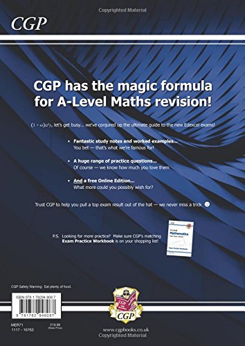CGP has Year 1 & 2 of Edexcel A-Level Maths covered (for courses starting in 2017 and beyond) with this fantastic Complete Revision & Practice Guide. It contains essential revision notes and worked examples for every topic, plus plenty of questions to test students on what they’ve learned (including answers). What’s more, the book comes with a free Online Edition to read on a PC, Mac or tablet. Don’t miss CGP’s matching A-Level Maths Exam Practice Workbook to make sure students are 100% prepared for the real exams (9781782947400).