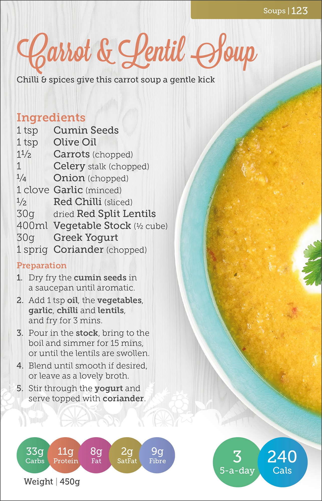 * Values for carbs, calories, protein, fat, saturated fat, fibre and 5-a-day fruit & veg