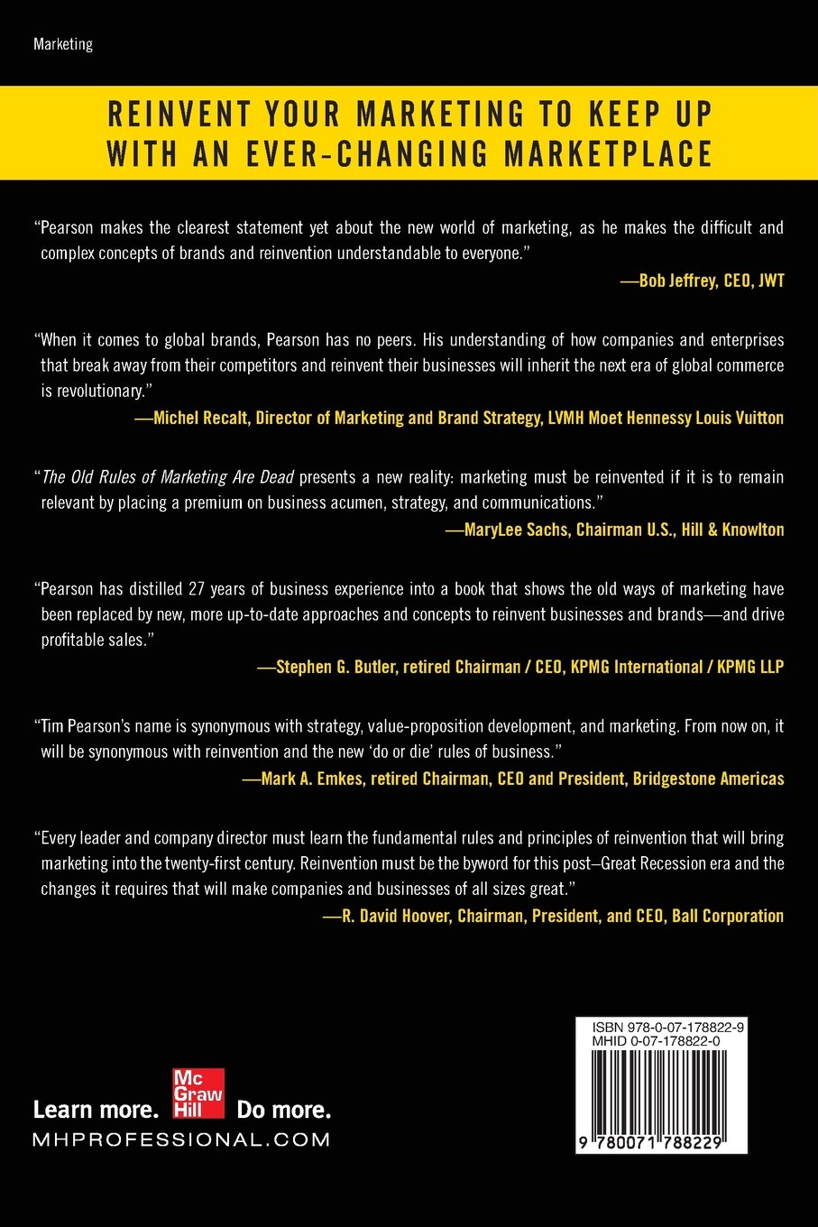 Pearson calls for nothing short of a marketing revolution. You must throw out almost everything you hold dear and embrace technology, a new role in business, and real accountability. The Old Rules of Marketing Are Dead has what you need to reinvent your products, your services--and your future.