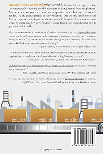 “If you are an Amazon seller of any size, or you if you know someone who is, get them Suspension Prevention. Cynthia and her professional team are on the cutting edge of termination prevention and reinstatement strategy on Amazon. They are who we turn to when advising our global community of Amazon selling students. This book is your 'suspension prevention strategy.'†– Jim Cockrum, Proven Amazon Course, JimCockrum.com
