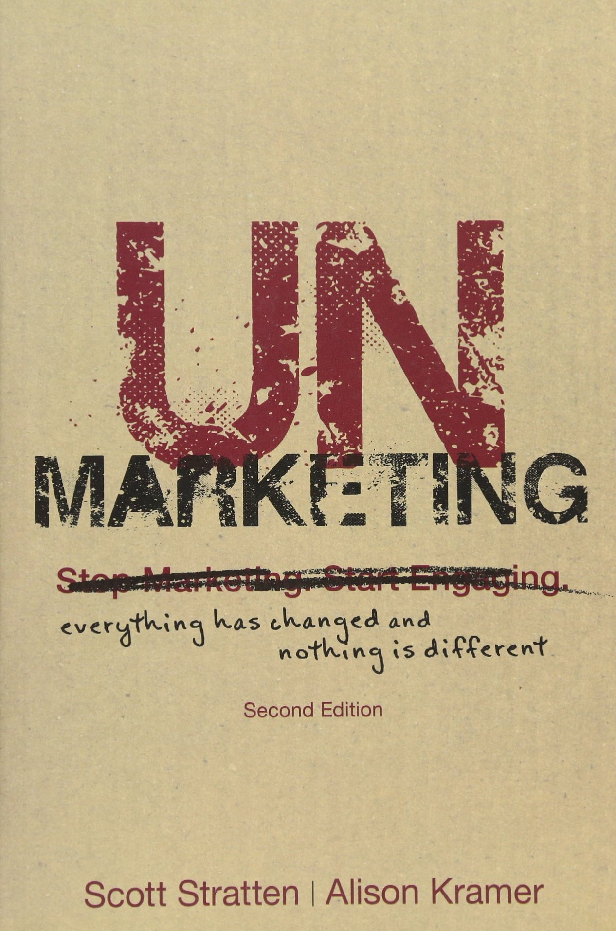 UnMarket to build trust and make lifelong customers! In 2009, Scott Stratten and Alison Stratten wrote the bestselling UnMarketing: Stop Marketing, Start Engaging and began a journey that would take them around the world sharing their message of engagement with corporations, entrepreneurs, and students.They are now back with this second edition, because Everything has Changed and Nothing is Different, with all the brilliance of the first edition, plus new content and commentary to reflect the rapidly changing landscape we all live, buy, and work in today. For generations, marketing has been hypocritical. We've been taught to market to others in ways we hate being marketed to (cold-calling, flyers, ads, etc.). So why do we still keep trying the same stale marketing moves? UnMarketing shows you how to unlearn the old ways and consistently attract and engage the right customers. You'll stop just pushing out your message and praying that it sticks somewhere. Potential and current customers want to be listened to, validated, and have a platform to be heard-especially online. With UnMarketing, you'll create a relationship with your customers, and make yourself the logical choice for their needs. We know you've been told to act like other people, talk like other people, and market like all the people, but it is time for you to unlearn everything and start to UnMarket yourself. UnMarketing includes the latest information on: Idea Creation, Viral Marketing and Video, Marketing to Millennials, Authenticity, Transparency and Immediacy, Ethics and Affiliates, Social Media Platforming, UnPodcasting, Word of Mouth, Customer Service, Consumer Advocacy and Leadership. With examples of what to do, and what not to do, from small business right up to worldwide corporations in areas such as real estate, travel, service, retail, and B2B.